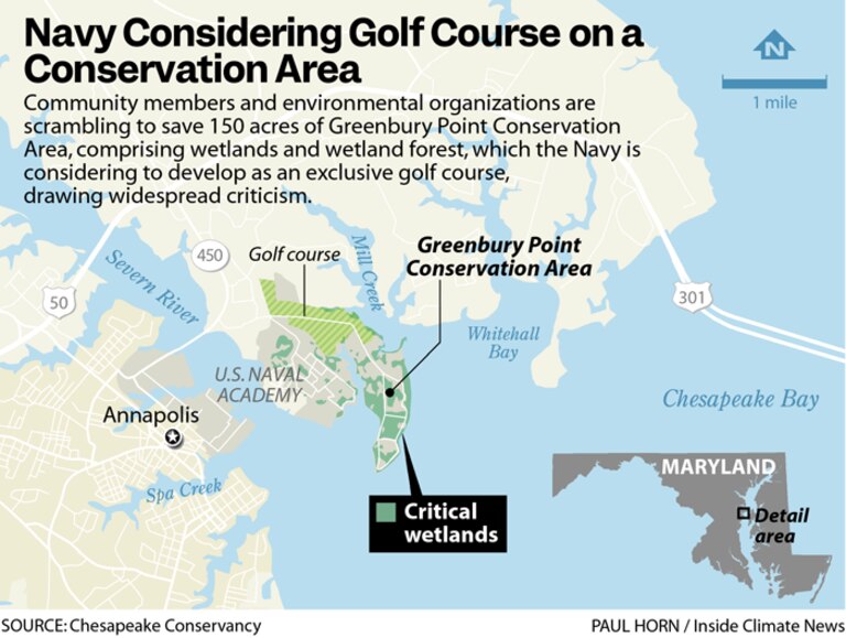 A Maryland congressman has voiced strong opposition to the U.S. Navy’s plan to develop a golf course on a protected wildlife and natural resources sanctuary in Annapolis, known as the Greenbury Point Conservation Area, a 150-acre wetlands and forest bordering the mouth of the Severn River and the Chesapeake Bay.