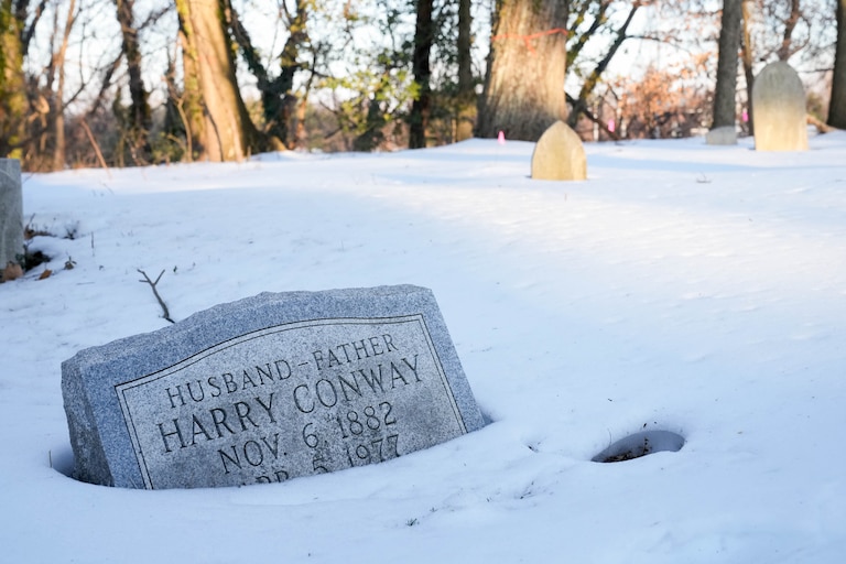 James Harvey, 77, swung a hatchet to break up ice on a recent visit. Funds for a caretaker would ensure he no longer has to do that, and would allow visitors more often. The only way into the chapel now is through family members, who keep keys to the gate.
