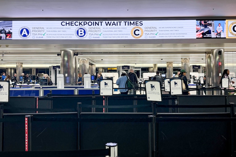 Security line wait times at BWI have fluctuated dramatically amid a partial government shutdown that has forced TSA agents to work without pay. As thousands call out of work across the country to make ends meet with another job, travelers have been funneled into fewer checkpoints, the lines growing especially long during morning and evening windows with denser flight schedules.