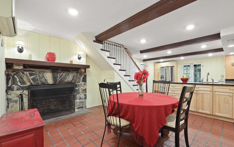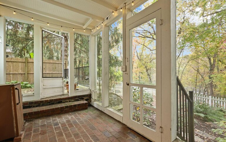 Tucked away in historic Dickeyville, this home offers lots of charm and beautiful views. The main level features a large living room with a wood-burning fireplace and a charming library or office, perfect for working from home. Off the library/office is a balcony with beautiful views of the backyard. The lower level offers a large kitchen with an attached dining room, powder bathroom and laundry room. A charming screened-in porch sits off the kitchen. On the third and fourth levels, there are two full bathrooms and three bedrooms, including one with high ceilings and exposed beams and brick.
