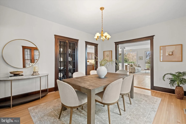 The home opens to a living room with wood-and-glass built-ins and a brick fireplace. The formal dining room has another unique built-in and French doors leading to the back of the house. A family room opens to the kitchen and a sunny breakfast nook, creating an inviting space. The family room features more built-ins and another brick fireplace. Don’t miss the butler’s pantry before heading upstairs.