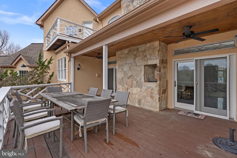A two-story family room with a floor-to-ceiling flagstone fireplace serves as the perfect gathering space. Large windows and two sets of double doors provide lots of natural light, and offer access to the rear deck. There’s also a unique library on this level, with built-ins and a spiral staircase which takes you upstairs to a lofted bonus space.