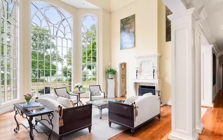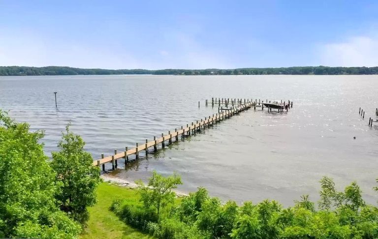 This Severna Park mansion has it all: amazing waterfront views, spacious living quarters, and luxurious amenities. As you approach the gated, French-inspired home, prepare to be stunned. Built in 2002, the home features a gourmet kitchen, two-story great room and a wood-paneled library. The primary suite offers a separate sitting area, fireplace and large balcony. A lower level features a billiards room and bar, virtual driving range, stone wine cellar and a home gym with a sauna.