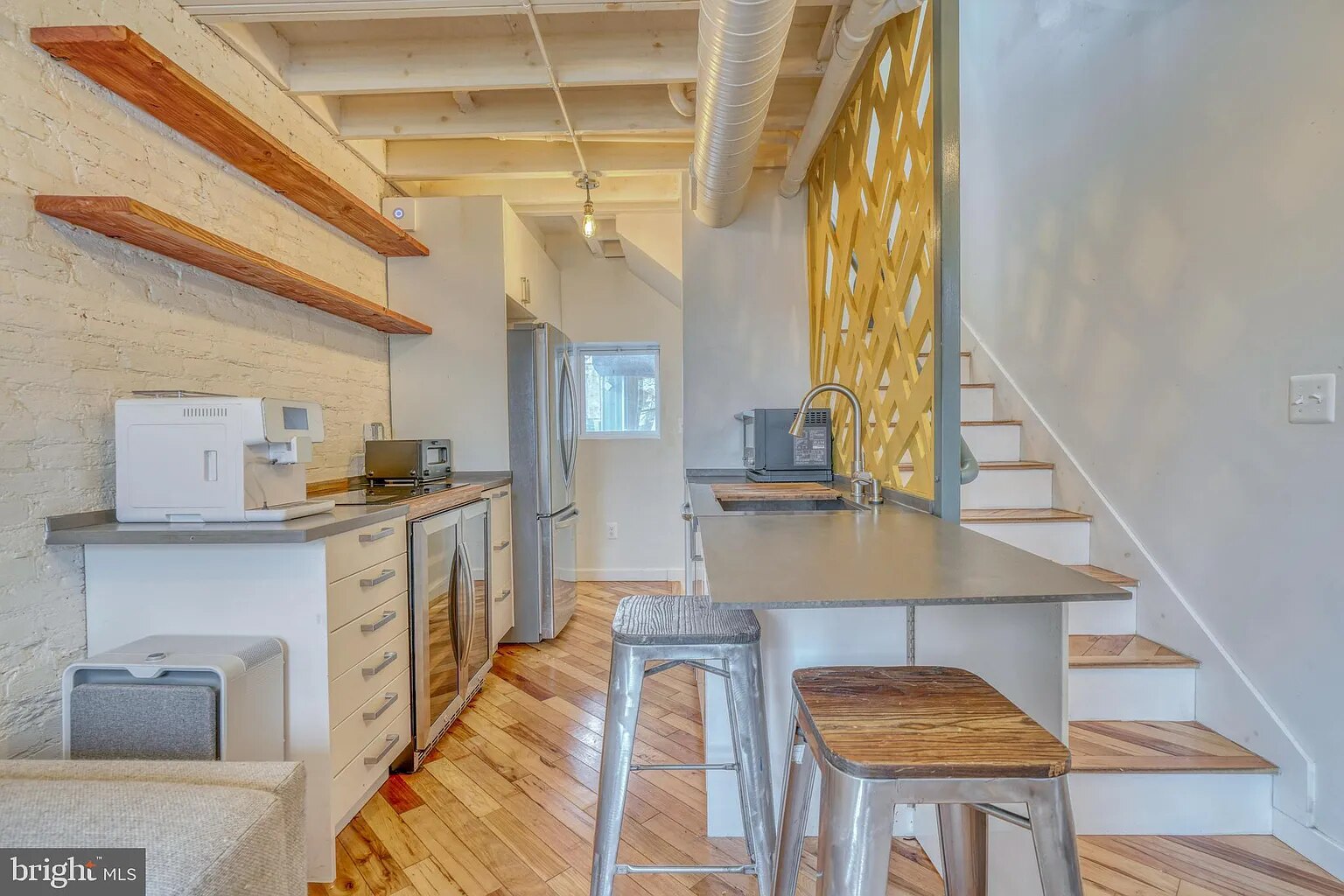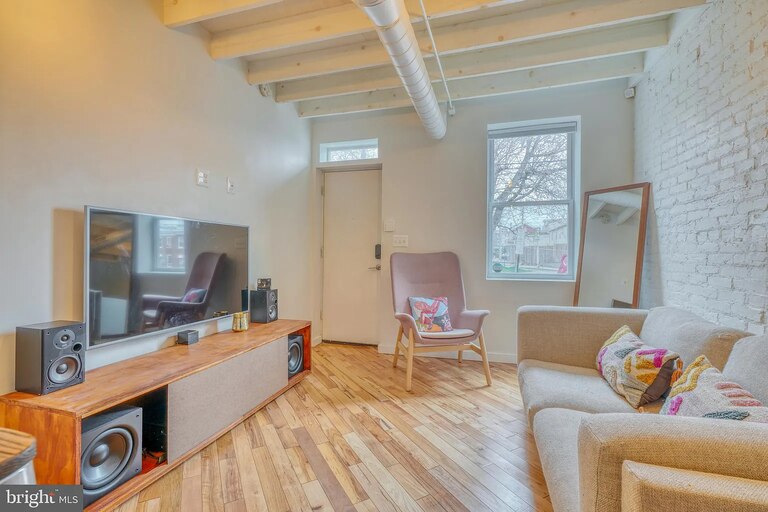 This unique rowhouse has been updated and transformed, with every inch designed to maximize space. The open main level features high ceilings, a sleek kitchen and hardwood floors. Upstairs, you’ll find a bright bedroom and an updated bathroom. The lower level features an additional bedroom and full bathroom.