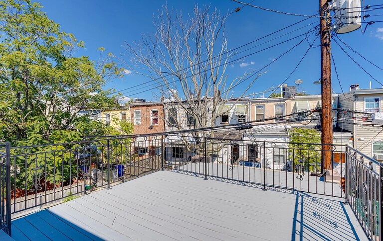 A modern, newly updated row home in Ellwood Park/Monument with a second-story deck
