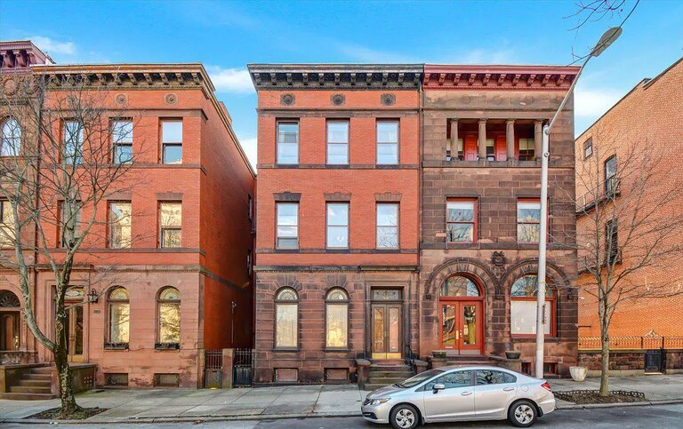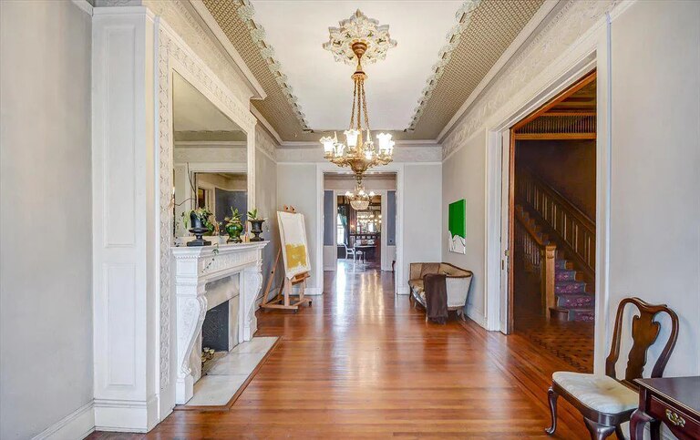 A stunning Bolton Hill townhouse, facing the Eutaw Place gardens, provides a rare opportunity to own one of the city’s grandest homes. This unique home is full of jaw-dropping architectural details, including ornate fireplaces, custom woodwork and plasterwork, parquet flooring and a beautiful stained-glass skylight. As soon as you step into the entry hall, you’ll recognize the uniqueness of this home. Through massive pocket doors, you’ll enter the front parlor, which features floor-to-ceiling windows, a beautiful fireplace and unique details on the ceiling.
