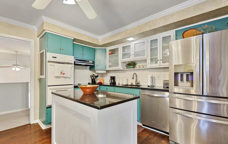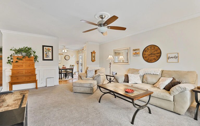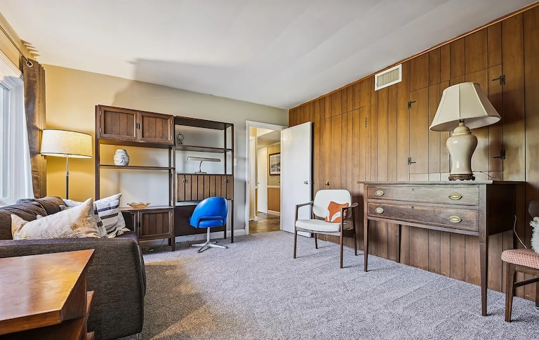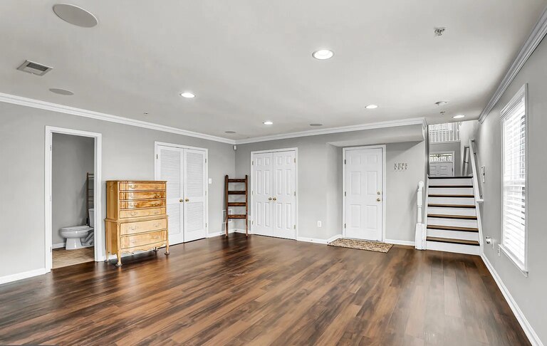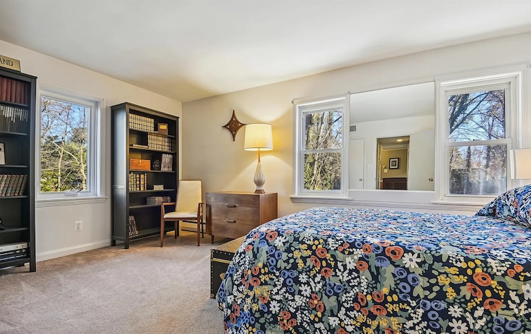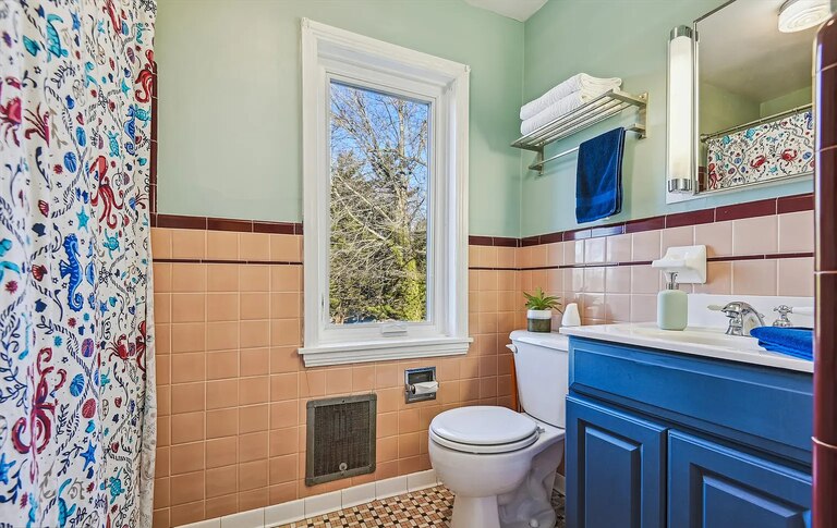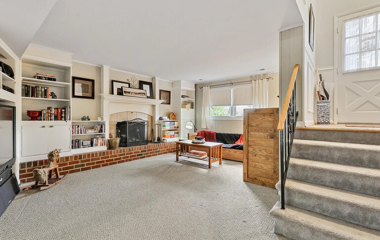 This split-level home, built in 1977, provides unique outdoor spaces in Ellicott City. The main level of the home features a warm living room, cheery kitchen, and small dining area. There’s also two bedrooms and two full bathrooms. The primary bedroom has a private walkout to a huge multilevel deck. The lower level opens to a family room with a fireplace and built-in storage. It also has two additional bedrooms, one of which is currently being used as an office, a bathroom, and a laundry room.