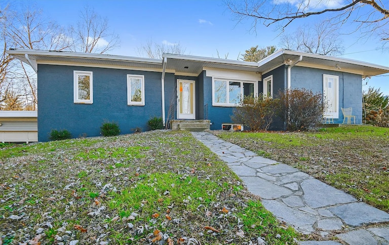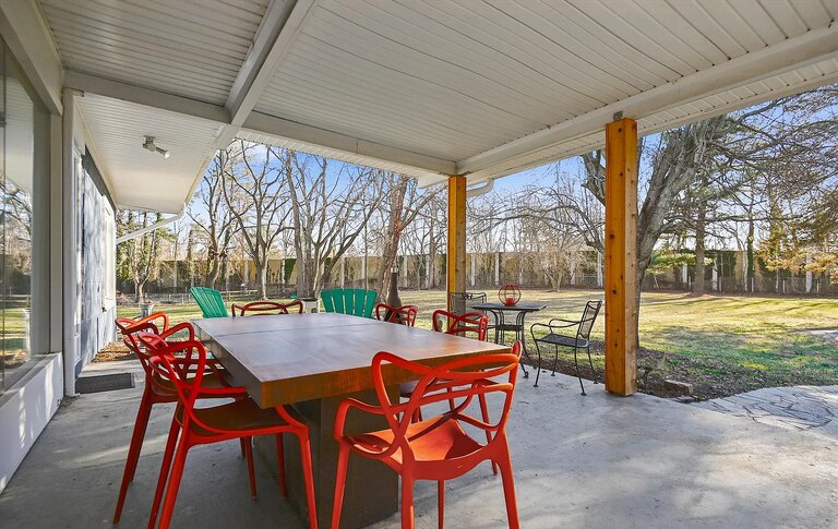 Built in 1948, this mid-century modern home in Ellicott City offers unique one-level living. Off the foyer, is the heart of this home, a large great room. This shared living and dining room features a stone fireplace and large windows overlooking the patio and backyard. The eat-in kitchen is off the great room and provides plenty of storage. The home has three bedrooms, one of which is currently being used as a den. The bathrooms feature original, colorful tile. A lower level includes a “rec room” with a billiards table, which comes with the house.