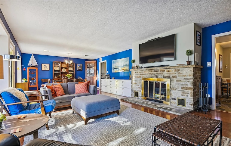 The fenced-in yard has several decks, including a multi-level deck off the primary bedroom and a screened-in deck, perfect for entertaining or relaxing.