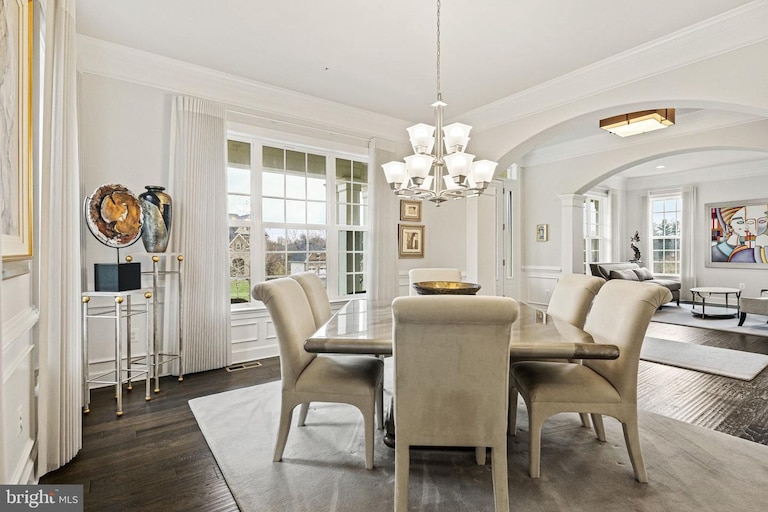 The home opens to a foyer, with double arches leading to formal living and dining rooms on either side. The heart of the home includes an open gourmet kitchen next to a relaxed family room with a gas fireplace. The modern cooking space features top-of-the-line appliances, a walk-in pantry and a large eat-in center island. There’s also an attached breakfast nook. A bright sunroom sits just off the family room and kitchen, expanding this central gathering space. It overlooks the rear patio and yard. A private home office/music room completes the main level.