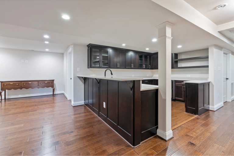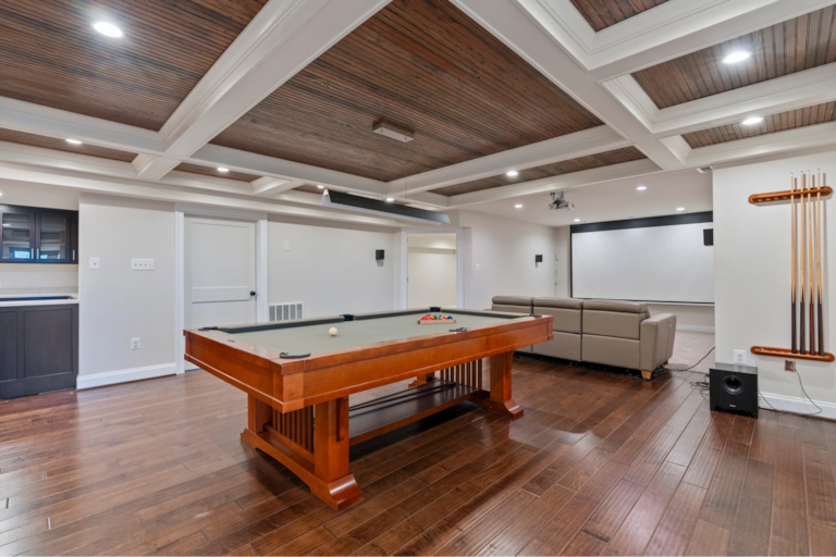 The lower level is an exceptional space, perfectly designed for entertaining. A large recreation room features a unique coffered ceiling, media room, and a well-equipped wet bar. Several other rooms offer flexible uses, including a home gym, additional bedrooms and more.