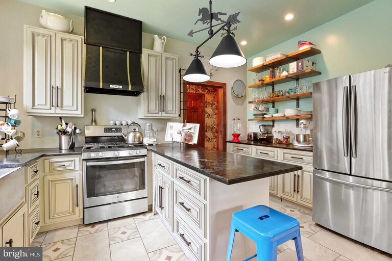 A large front porch and curved front door welcome you to this tucked-away cottage in Northwest Baltimore’s Mount Washington neighborhood. Inside, this small home has been thoughtfully laid out, with a comfortable living room, open dining room and updated kitchen. There are two bedrooms and one bath on the main level, with another full bathroom downstairs. There are wood floors throughout and a large fireplace, perfect for cooler weather.