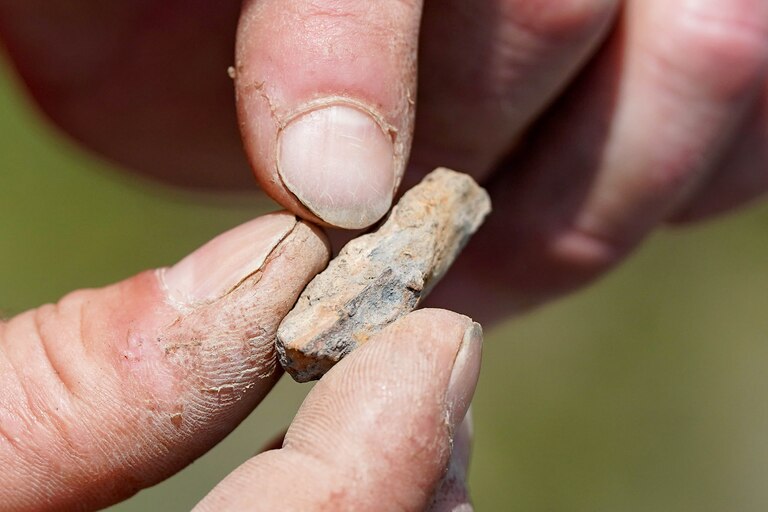 Staff often tell visitors to keep their eyes peeled for anything small, ranging in size from a pinky to a thumbnail, that doesn’t seem to fit in with its surroundings. Dinosaur bone encased in rock for millions of years may take on a blueish hue when exposed to oxygen. Some of the best fossilized teeth have been found by children, Hodnett said.