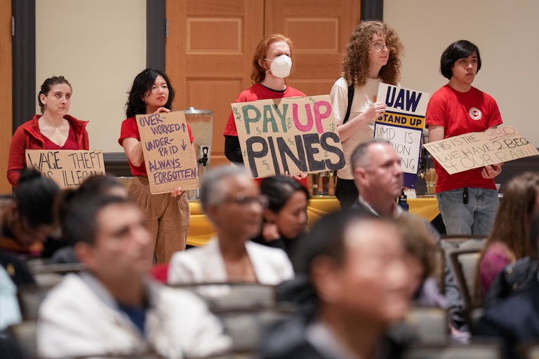 Under state law, public universities do not have to recognize graduate student unions, meaning they’re not required to negotiate with them over pay and other issues. Since 2023, graduate students have operated what’s essentially a shadow union to organize protests and advocate online.