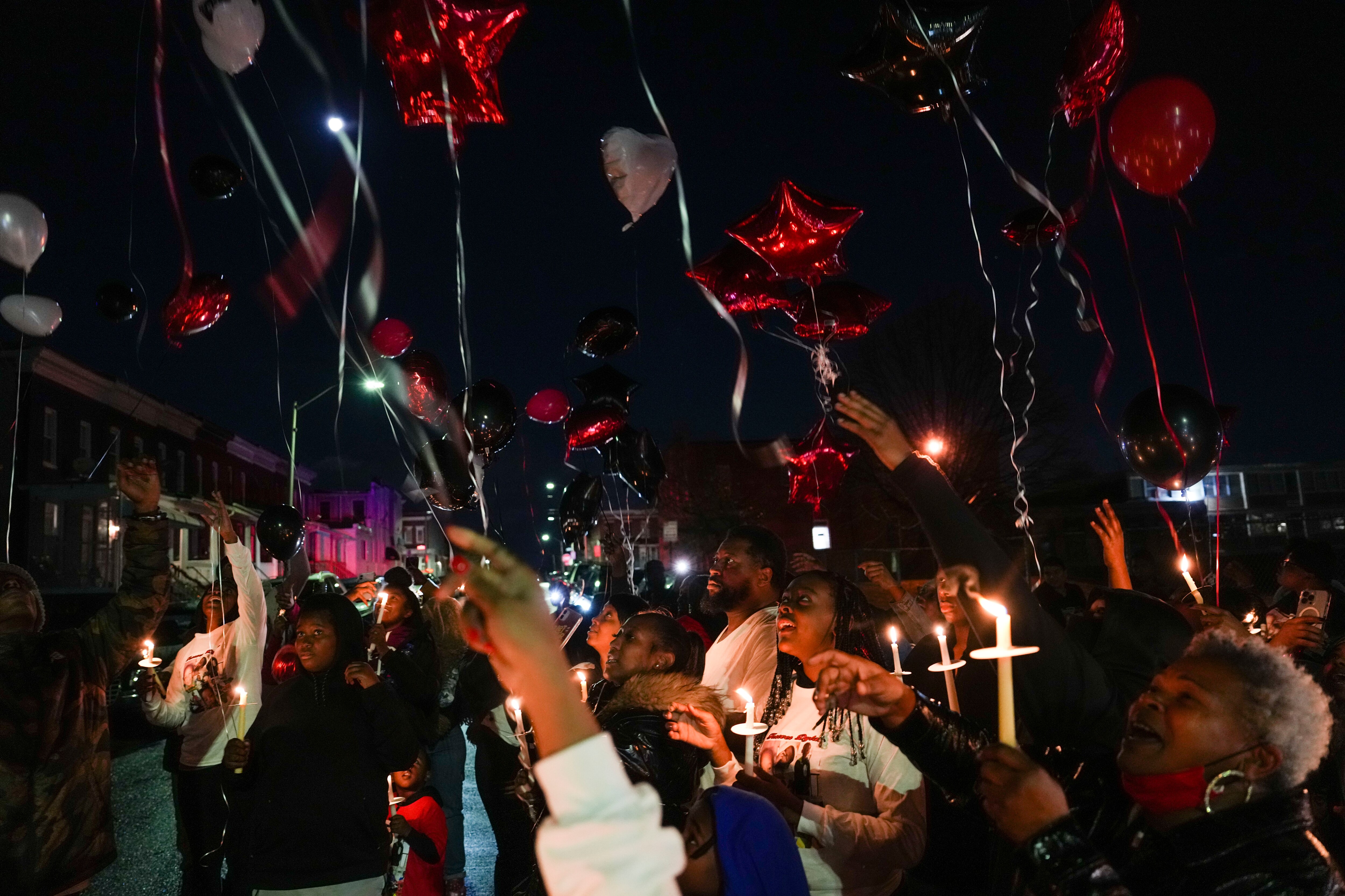 A vigil was held in West Baltimore for Dylan King, 8, who was shot and killed last week on December 30, 2022. (Kaitlin Newman/The Baltimore Banner)