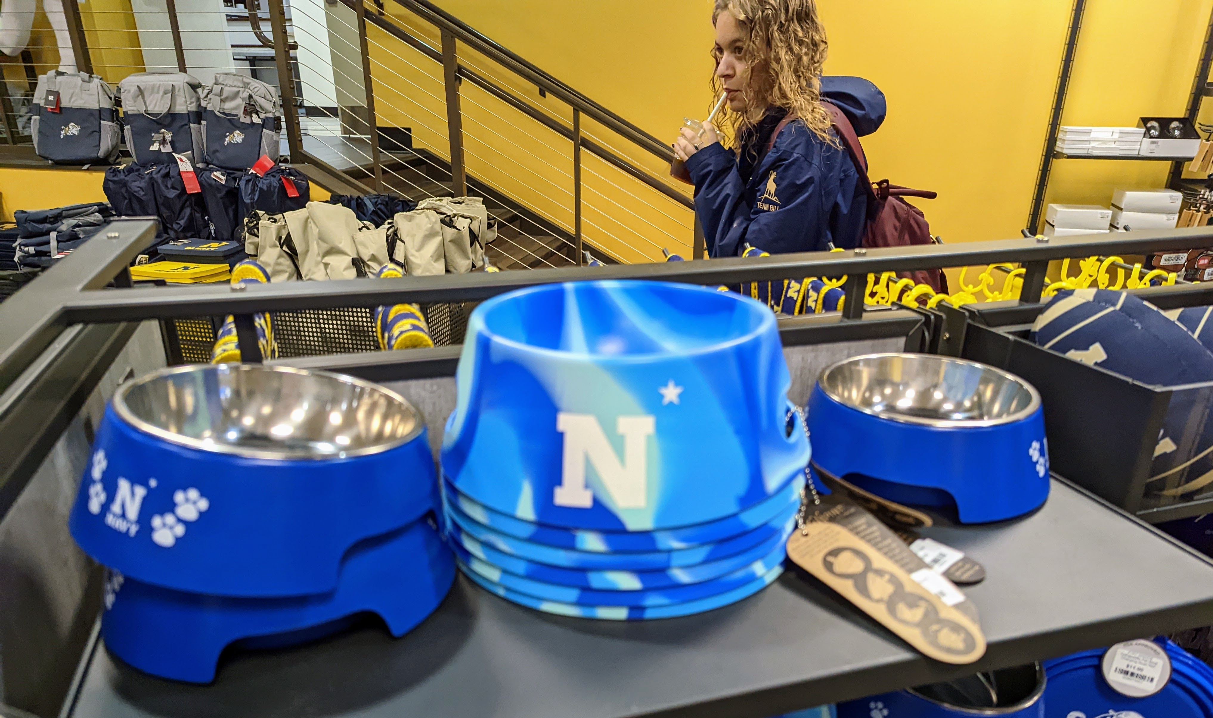 Shirts, shorts, hats and sweats emblazoned with “NAVY.” Cups, phone chargers, headphones and wallets. A stuffed Bill the Goat? Bow tie or hair ribbons? Looking for something that screams Naval Academy? It is here, though not everyone can stroll its aisles.