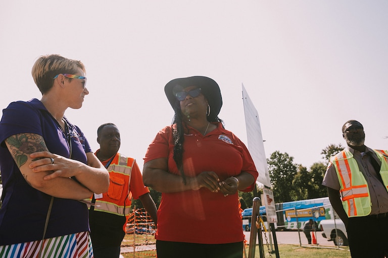 “We root for all, but we want Bush to win,” said Maurice Wheeler, a 14-year bus operator and trainer who helped set up the course and then watched his colleagues drive it. Hitting a yellow cone means a 25-point deduction. If a driver is on the course for longer than seven minutes, they get pulled — the faster your time, the better your score.