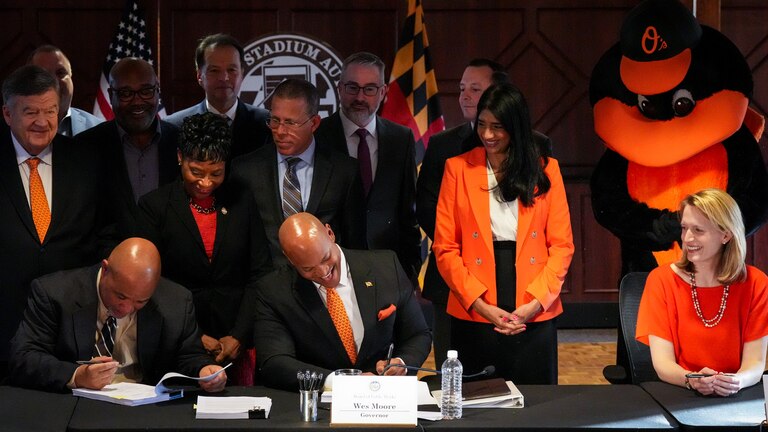 There were fun and games at the Maryland State Fair, but more people remember when an announcement flashed on the video board at Camden Yards, proclaiming that the state and the Orioles reached a 30-year deal to keep the team playing in Baltimore. Moore was shown celebrating alongside Angelos — though it became clear the next day that the deal was not a formal lease, but rather a non-binding memorandum of understanding. Moore has maintained it was a key progress point in lease negotiations.