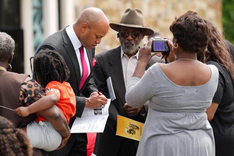 On Jan. 18, 2023, Moore was sworn in on a Bible once owned by Maryland abolitionist Frederick Douglass on the front steps of Maryland’s State House in Annapolis. Thousands from across the state and beyond came to watch, including Moore-family friend and former Maryland journalist Oprah Winfrey and New York Mayor Bill DeBlasio. Thousands of people packed the Baltimore Convention Center to celebrate the new governor, as well as Lt. Gov. Aruna Miller.