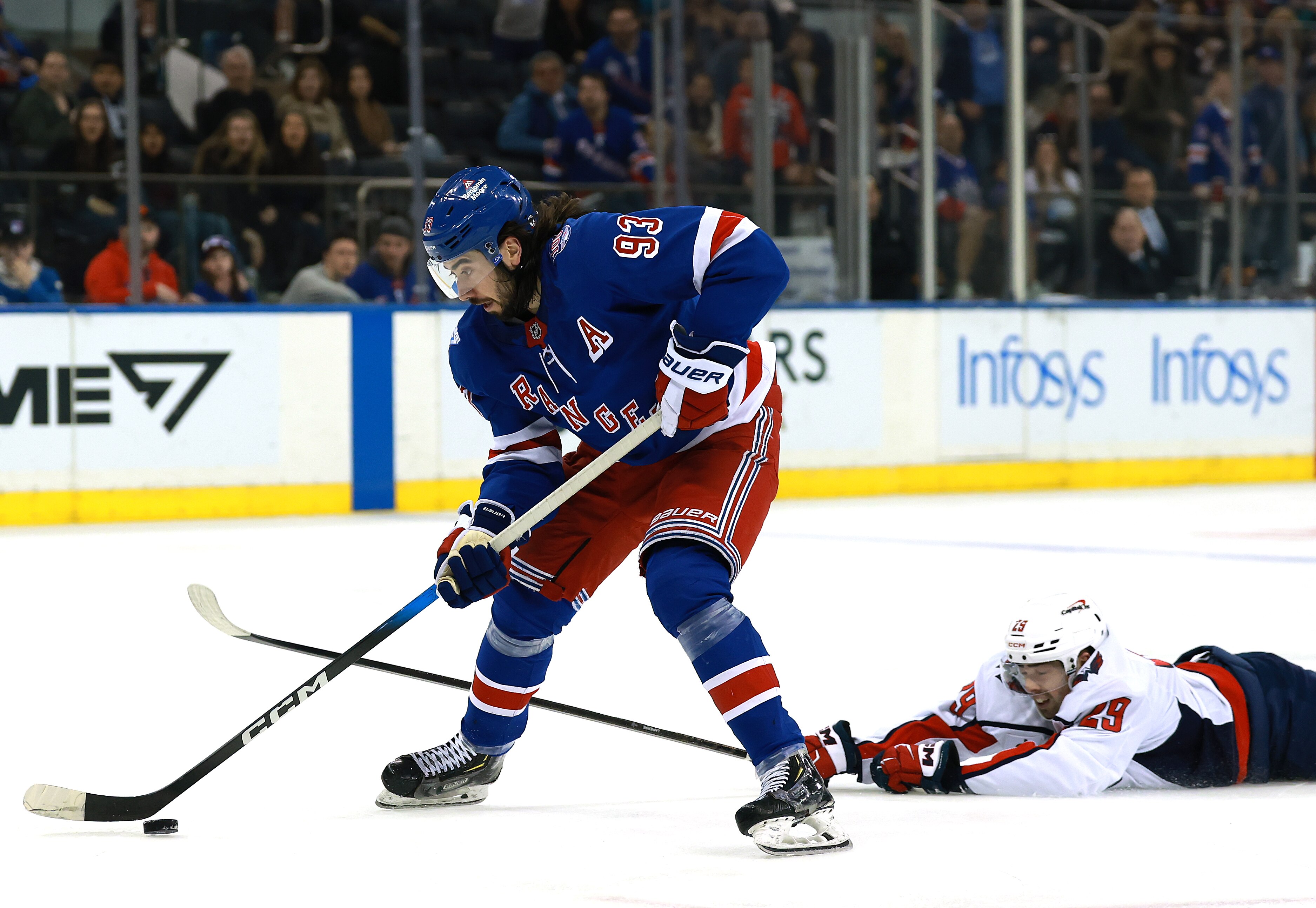 A second consecutive delay-of-game penalty for putting the puck over the glass 7 seconds after the first expired paved the way for a Rangers power-play goal when Mika Zibanejad’s shot banked in off J.T. Miller’s left skate. Will Cuylle scored twice over the ensuing six minutes, and goals by Adam Sykora and Adam Fox put the deficit out of reach.