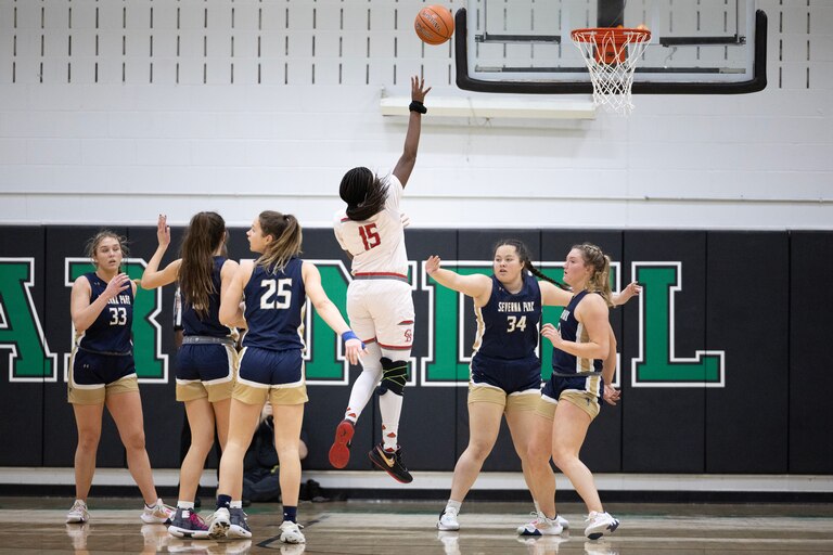 A turnover by Glen Burnie, a couple of misses by the Falcons, and a block by Gophers senior forward Aichetta Soumaoro (five rebounds, six blocks) kept the lead at a point until Layla Washington was fouled on an inbound play and converted both double bonus free throws with 27.1 seconds remaining to push the advantage to three.
