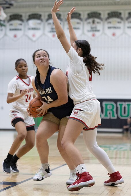 The Falcons climbed within three points at 21-18 with 3:15 left in the third quarter, but an open layup by McKenzie Gilbert off a pass from Porter and then two free throws by Porter pushed Glen Burnie’s advantage back to seven, 27-20, by quarter’s end.