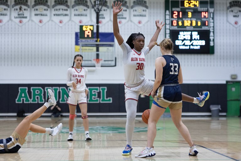 The Falcons, who limited Glen Burnie to just 16 second-half points, then used an 8-3 run over the next roughly four minutes to close the game to 35-34 following a fast-break layup by Ryn Feemster that followed six straight points by Hanna Verreault, who produced 10 of her game-high 17 points in the fourth quarter.