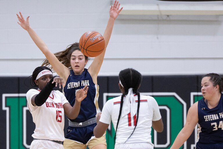 Glen Burnie - Cassidy Wilkerson 7, Amourie Porter 16, Aichatta Soumaoro 3, Lania Nick 7, McKenzie Gilbert 2, Layla Washington 2. Totals: 8 18-27 37.