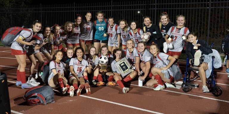 The ball sailed toward the goal, hitting the top net for an early strike for Maryvale (9-7-2 overall).