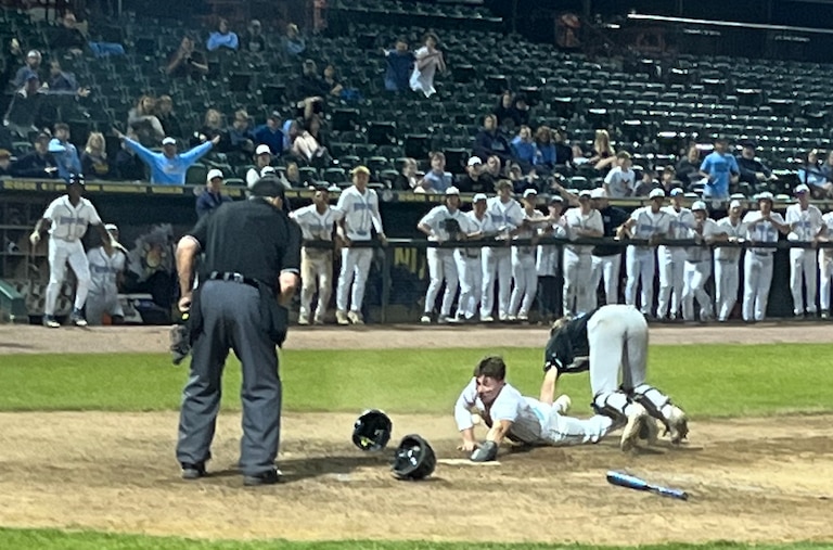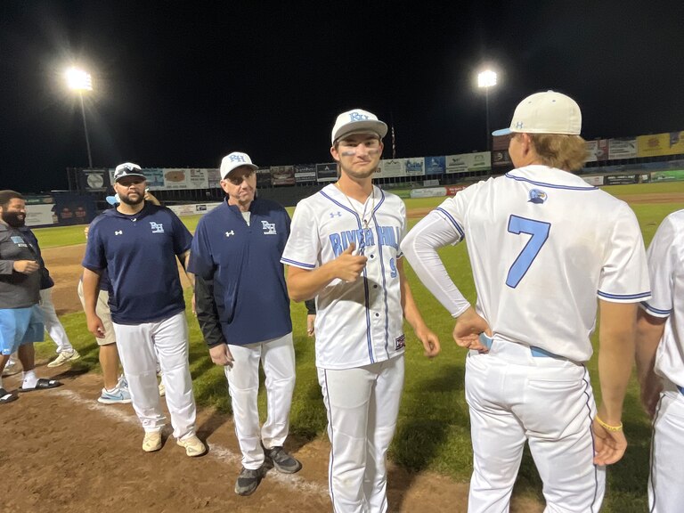 “That was the first time we suicide-squeezed all year,” said River Hill coach Craig Estrin, whose team capped a 21-4 season. “I had two seniors, so I knew if they picked up the sign – which is always a 50/50 shot – but it they pick up the sign then we have a shot. It all worked.