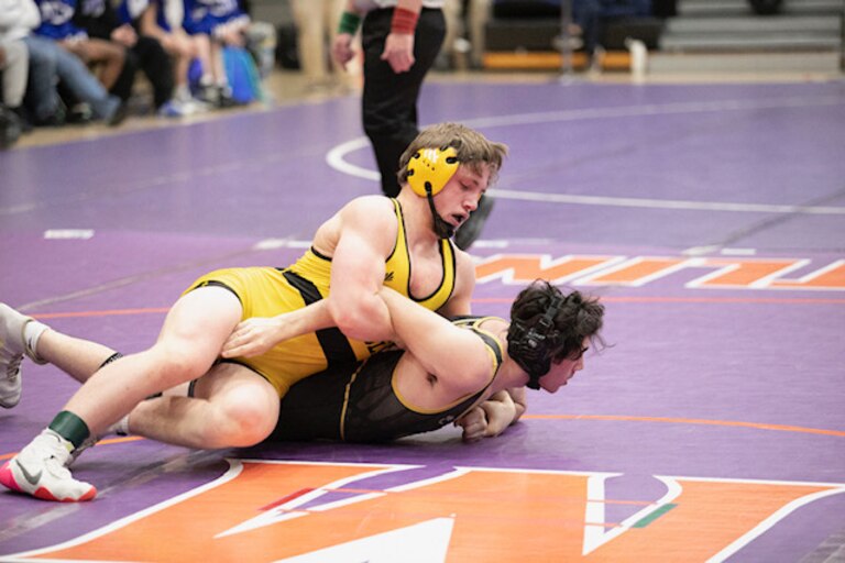 Also winning twice were freshman Grayson Barnhill (106) and sophomore Evan Owen (120). Barnhill won his 27th and 28th matches of the year with falls in 24 and 83 seconds, and Owen rose to 37-4 with a 74-second pin and a 9-1 major decision.