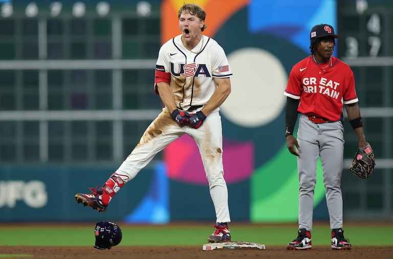 Henderson sped up, slid into second base, and screamed and flexed for the benefit of his teammates — whipping the Houston crowd into a frenzy as his two-RBI base hit gave the U.S. a commanding lead over Great Britain.