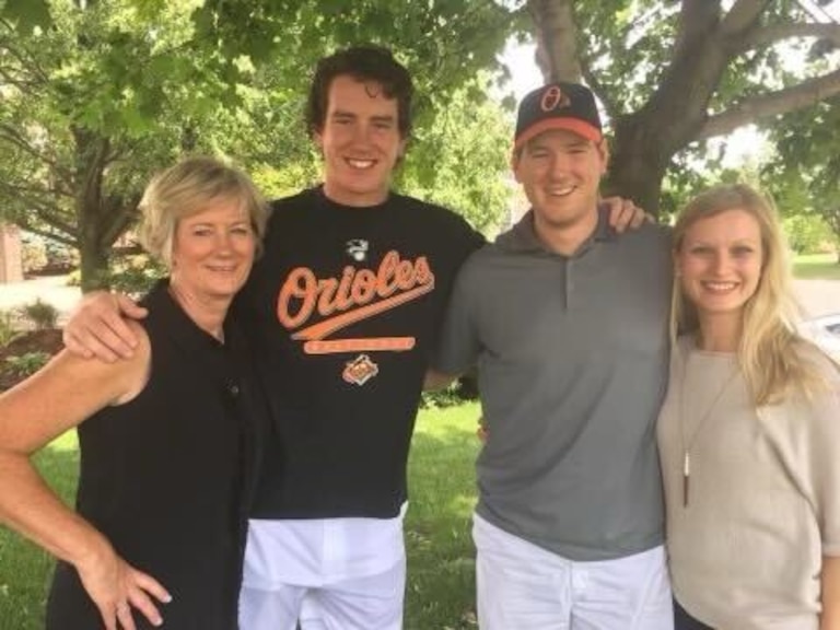 When Mike Baumann learned the Orioles selected him in the third round of the 2017 draft, Nick ran upstairs to look for that T-shirt. He found it, grabbed both it and his dad’s Orioles hat, and ran downstairs for a family photo. There was Leslie, Mike, Nick and Nick’s wife Kristy — the Baumann family.