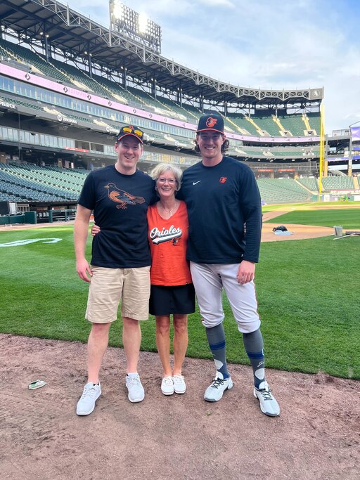 During Mike’s first spring training with the Orioles, he was assigned No. 57 — by happenstance the year his mom was born. When he made his major league debut in 2021, however, he was given No. 53. She first wondered what happened to No. 57 before she realized the new number, randomly assigned by the Orioles, wasn’t any old number.