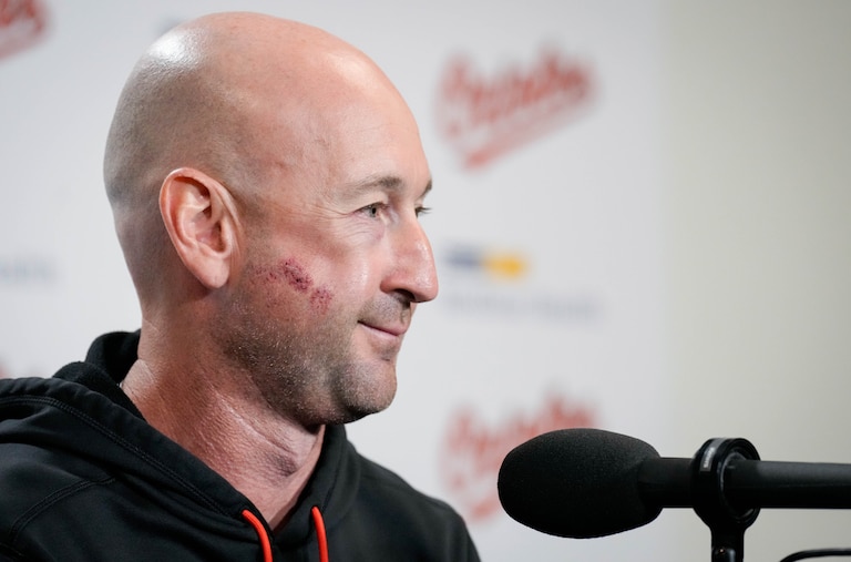 “Want the camera to get this side, as opposed to this side?” the Orioles manager quipped.