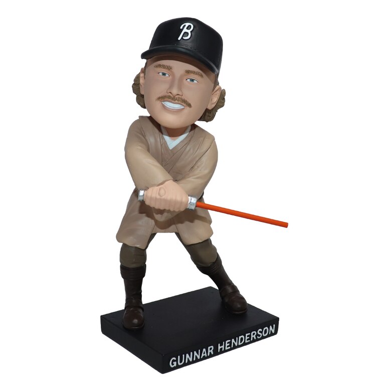 Like many baseball players, catcher Adley Rutschman is also pretty good at golf. In this bobblehead, available Sept. 24, for the first 15,000 fans, the star player shows off his switch-hitting skills in a different variety: with a baseball bat and a putter.