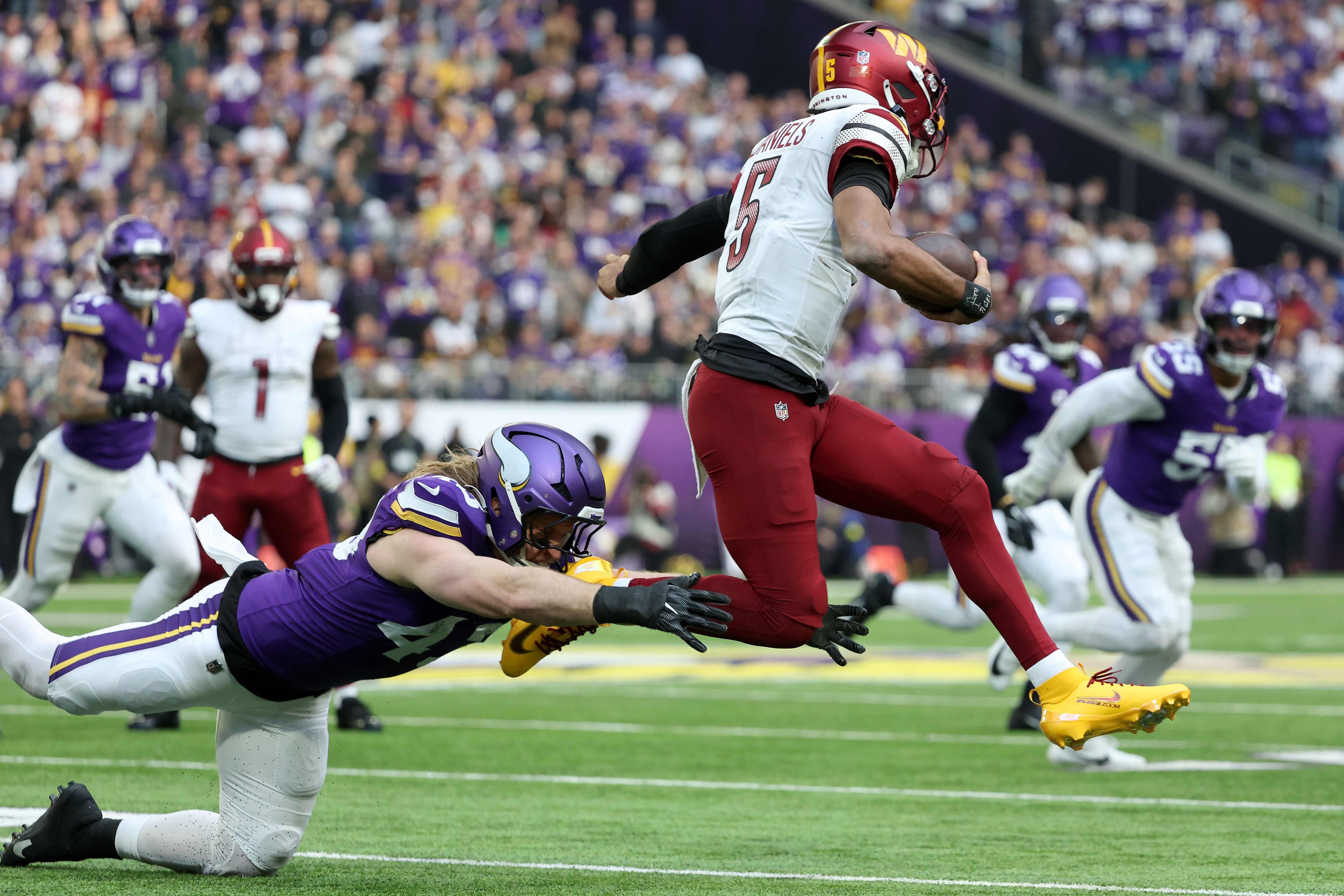 Instead, Jayden Daniels hurt his elbow again in the third quarter, veteran tight end Zach Ertz suffered a serious knee injury moments later, and Washington failed to score in a humbling 31-0 loss to the rejuvenated Vikings.