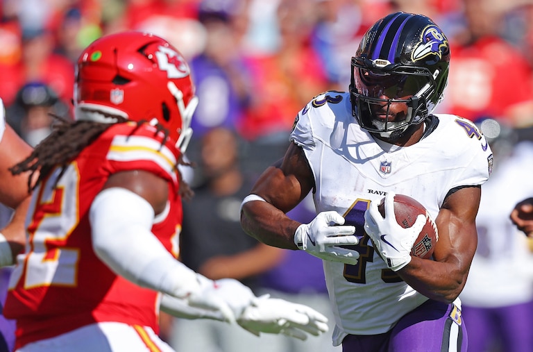With Hill (262 total yards and three touchdowns in 2025) sidelined, the Ravens’ backfield leaned more on Keaton Mitchell (2 carries for 19 yards and TD) and Rasheen Ali (4 carries for 17 yards).